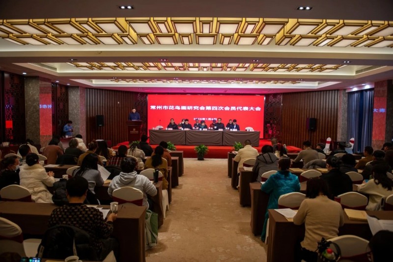 1月6日下午,常州市花鸟画研究会第四次会员代表大会在湖港花园酒店召开。中共常州市委原常委、宣传部原部长、市花鸟画研究会顾问张晓霞,市文联党组书记、主席舒文,市文联二级调研员周勇刚,市委宣传部干部处副处长葛安杰,市民政局社会组织管理处主任张大品参加会议。江苏省花鸟画研究会发来贺信,市美术家协会副主席黄海波代表兄弟协会致贺词。会议由市花鸟画研究会第三届副主席兼秘书长何钰主持。