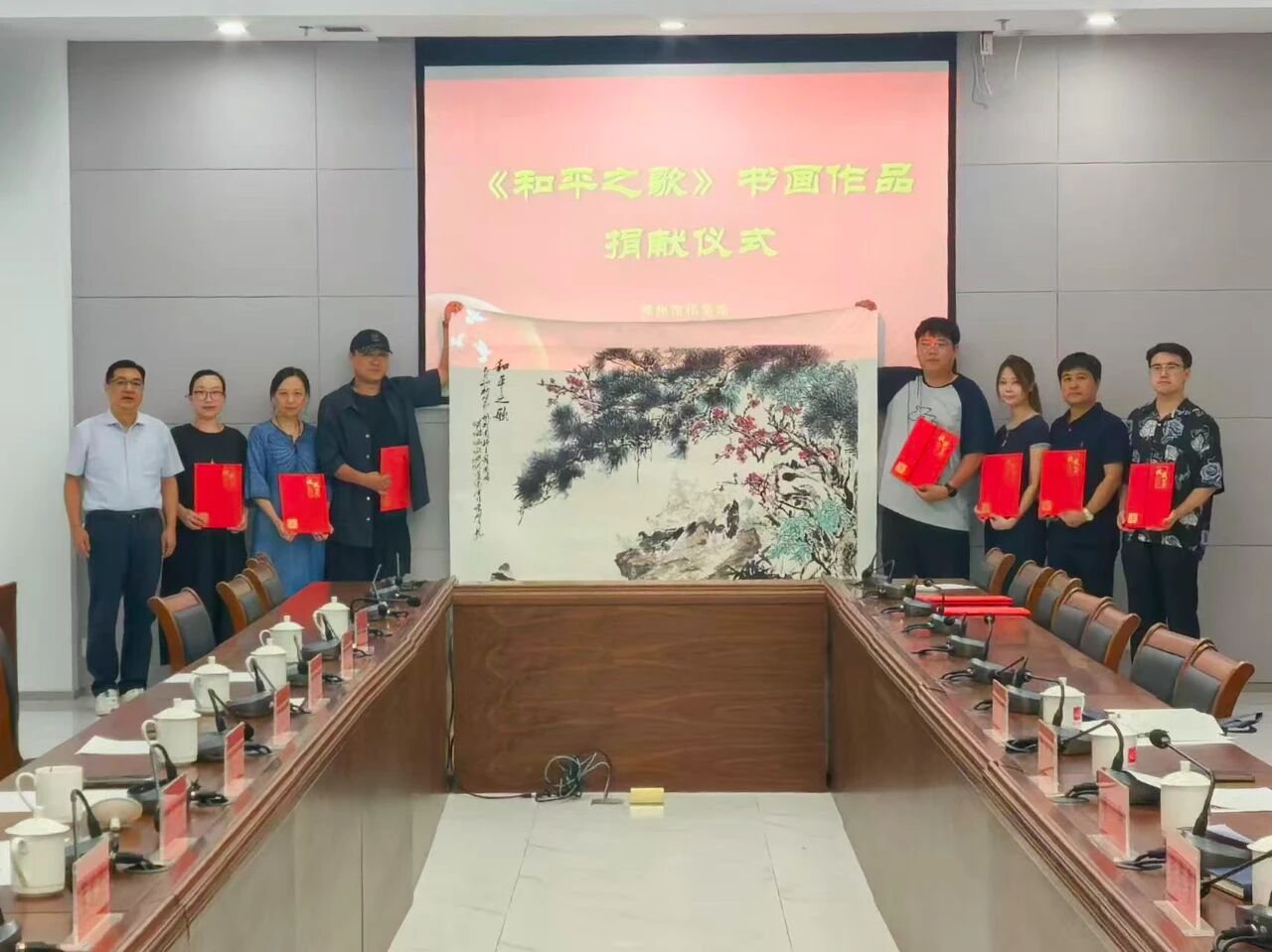 此次捐赠的作品是由常州市花鸟画研究青年分会组织10位创作骨干共同创作《和平之歌》花鸟画作品(含书法诗堂、对联),向纪念中国人民抗日战争暨世界反法西斯战争胜利80周年和九三阅兵活动献礼!