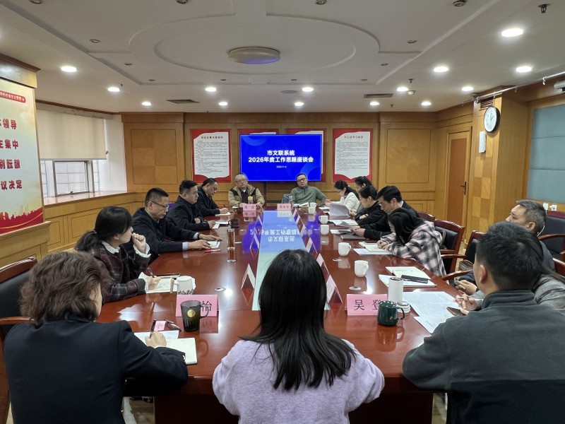 11月4日,常州市文联召开2026年工作思路座谈会,全面贯彻落实党的二十届四中全会精神,深入践行习近平文化思想,紧紧围绕常州发展大局,进一步厘清工作思路、明确工作重点、谋划创新举措。市文联党组书记、主席沈玉俊,党组成员、副主席蒋志文,党组成员、副主席、秘书长蒋小萍,二级调研员周勇刚,各辖市(区)文联以及市文联直属单位、各部门负责同志参加会议。会议由蒋志文主持。