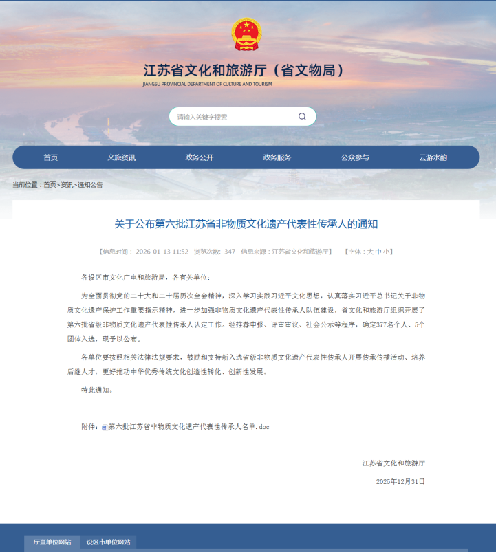 近日,江苏省文化和旅游厅正式公布第六批江苏省非物质文化遗产代表性传承人名单,经推荐申报、评审审议、社会公示等程序,全省共377名个人、5个团体成功入选。常州市工艺美术家协会12人入选,涵盖竹刻、象牙浅刻、烙画、梳篦、明式家具等多个传统工艺门类。